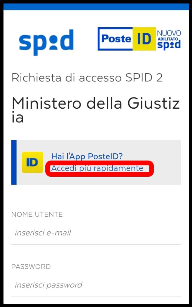 Se utilizzi lo SPID di Poste ID, probabilmente hai la relativa app già installata sullo smartphone, mentre se utilizzi la CIE probabilmente hai l’app CieID. Se per eseguire la firma stai usando lo smartphone, come in questo caso, devi selezionare il pulsante Accedi più rapidamente. Se stai utilizzando un PC o un tablet, dovrai aprire l’app PosteID oppure CieID sullo smartphone per inquadrare il QR Code che verrà mostrato sullo schermo.