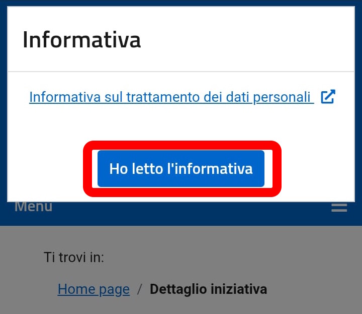 Questa pagina permette di leggere l’informativa sul trattamento dei dati personali. Puoi selezionare direttamente il pulsante Ho letto l’informativa senza leggere nulla.